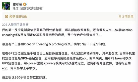 在知乎问题“如何评价微信团队回应‘10 元就能在朋友圈改定位’?”的回答中,通讯话题优秀回答者“甜草莓” 认为这个生意等同于“收智商税” ,因为修改朋友圈定位其实是最初级的应用就能实现的功能。
